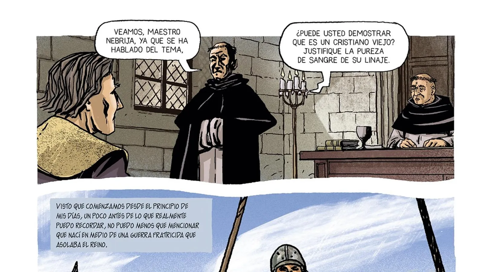 Sevilla/ Sevilla, 22 mar (EFE).- El "combate contra la ignorancia" de Elio Antonio de Nebrija ha llegado al cómic mediante los lápices del dibujante argentino Agustín Comotto en "Nebrija", volumen de 150 páginas con un prólogo de Juan Bonilla en el que el escritor afirma que aquel "combate" de Nebrija lo fue también "contra la barbarie y la pedantería".