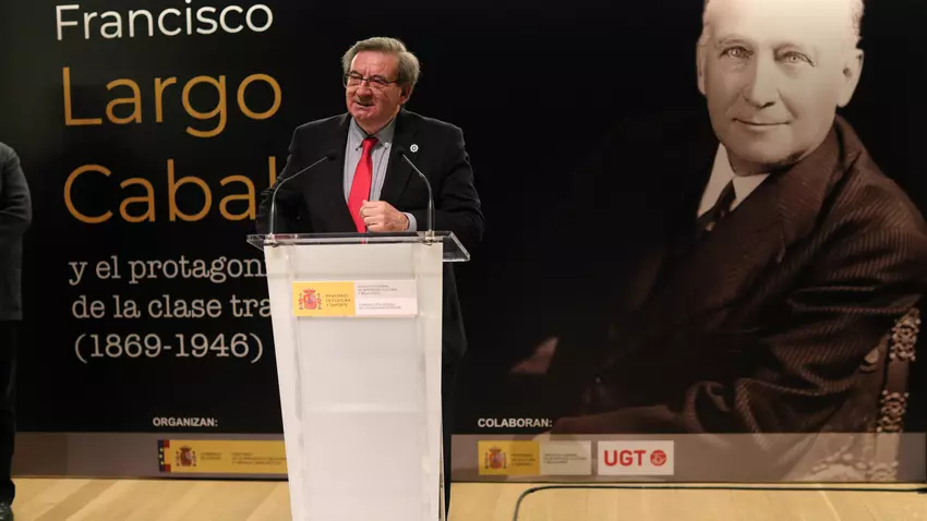 La muestra "Francisco Largo Caballero y el protagonismo de la clase trabajadora (1869-1946)", que podrá verse hasta septiembre, trata de "rescatar" a una de las figuras "más importantes de la primera mitad del siglo XX en España", ha explicado en la inauguración el secretario de Estado de Memoria Democrática, Fernando Martínez.