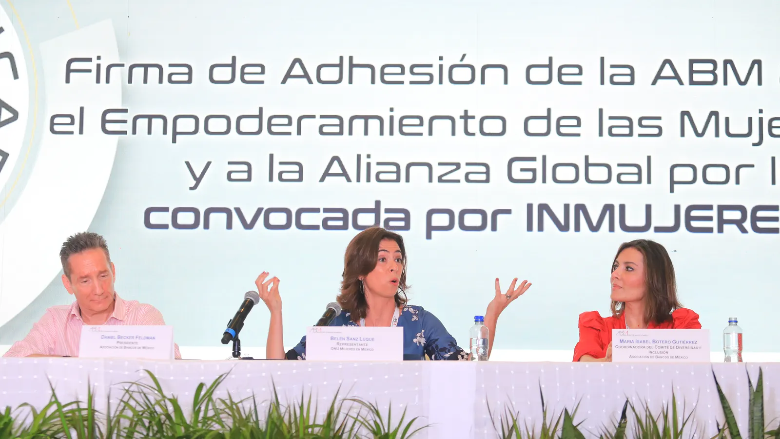 Belén Sanz, representante de ONU Mujeres en México, destacó el "compromiso público en doble vía" de la ABM, con más de 50 socios, por firmar los “Principios para el empoderamiento de las mujeres” y la “Alianza global por los cuidados”.