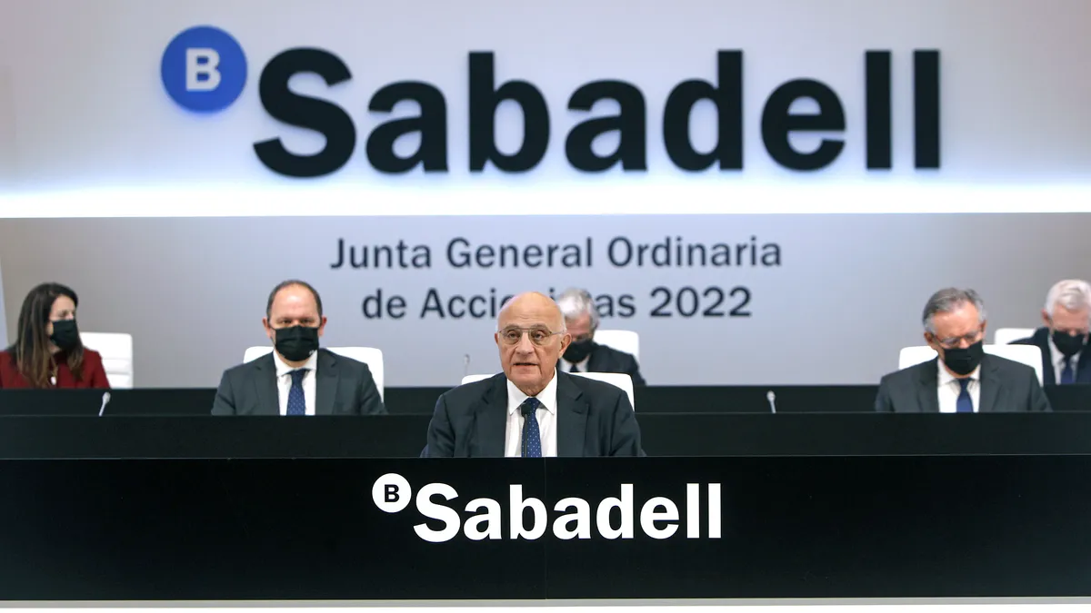 El Sabadell celebra este jueves en Alicante su junta general ordinaria de accionistas, donde se aprobará el reparto de un dividendo de 3 céntimos por acción, lo que supone una retribución por título del 5,1 %, tomando como referencia el precio de cierre de 2021.