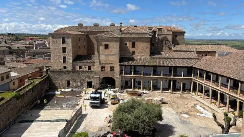 En la mañana de este martes, la presidenta de Paradores, Raquel Sánchez, la secretaria de Estado de Turismo, Rosario Sánchez, y el alcalde de Oropesa, Rubén Zapardiel, han visitado las obras que se están llevando a cabo en el parador de la localidad toledana con una inversión de más de 12 millones de euros.