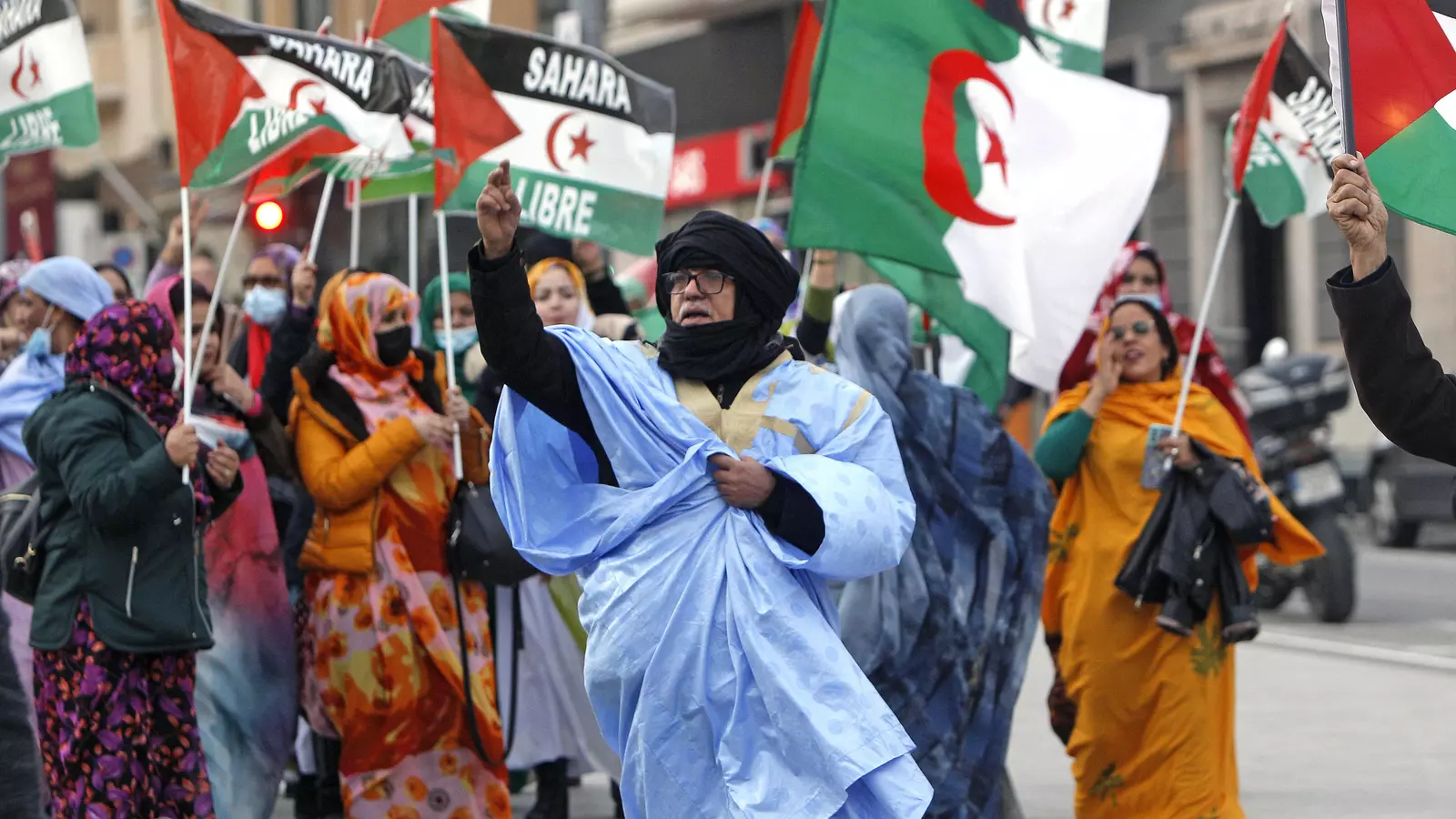 Con pancartas y gritos como "Sánchez, entiende, el Sahara no se vende", "Sánchez, traidor, Marruecos invasor" y "Libertad e independencia para el Sahara Occidental", los convocantes han defendido que "la única solución justa, realista y política es aquella que elija el pueblo saharaui sobre la base del derecho internacional mediante de la celebración de un referéndum de autodeterminación".
