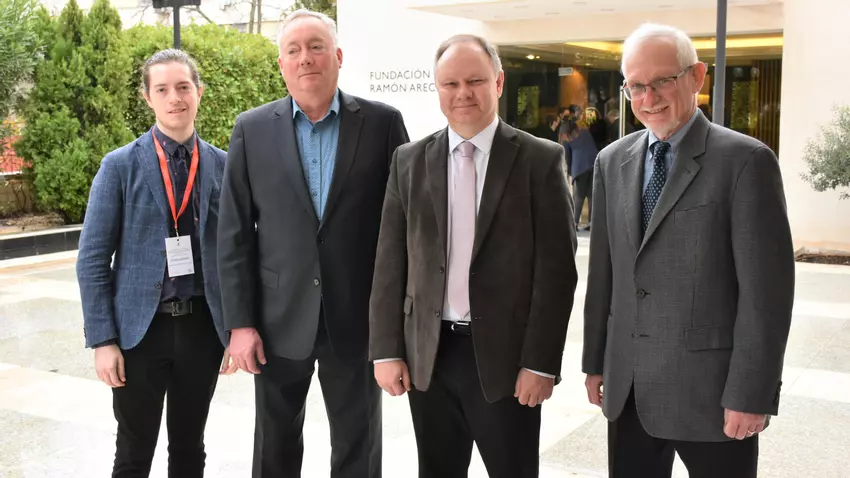 Profesores e investigadores del Instituto Tecnológico de Massachusetts (MIT) han advertido que la actual inestabilidad geopolítica frena los avances que se habían realizado hacia una huella de carbono neutral en una entrevista con EFE en la Fundación Ramón Areces. En la foto, de izquierda a derecha, el investigador postdoctoral y docente del MIT, Peter Godart; el profesor de ingeniería del MIT, Dennis G. Whyte; el director adjunto del programa de Investigación Científica del MIT, Sergey Paltsev (dcha) y el ingeniero de investigación del MIT, Howard J. Herzog. EFE/ Fundación Ramón Areces / SOLO USO EDITORIAL/ SOLO DISPONIBLE PARA ILUSTRAR LA NOTICIA QUE ACOMPAÑA (CRÉDITO OBLIGATORIO)